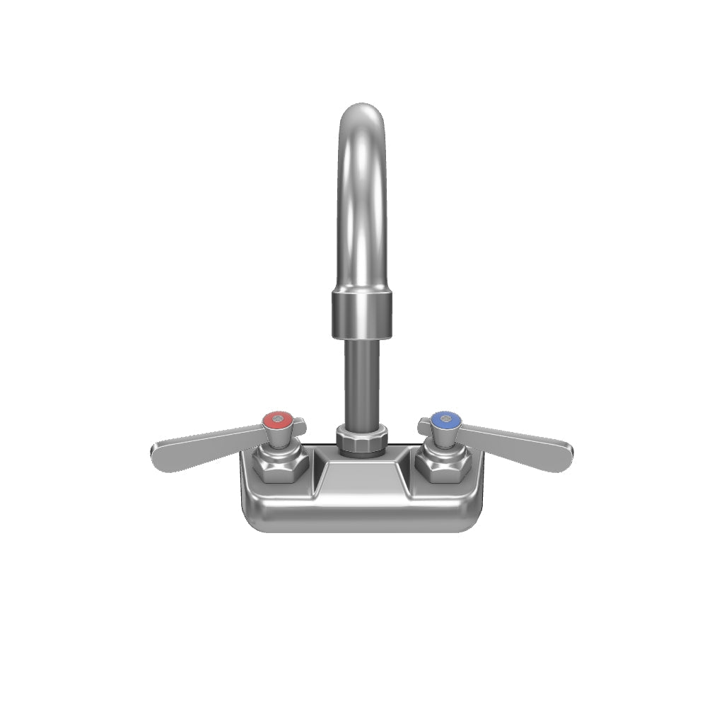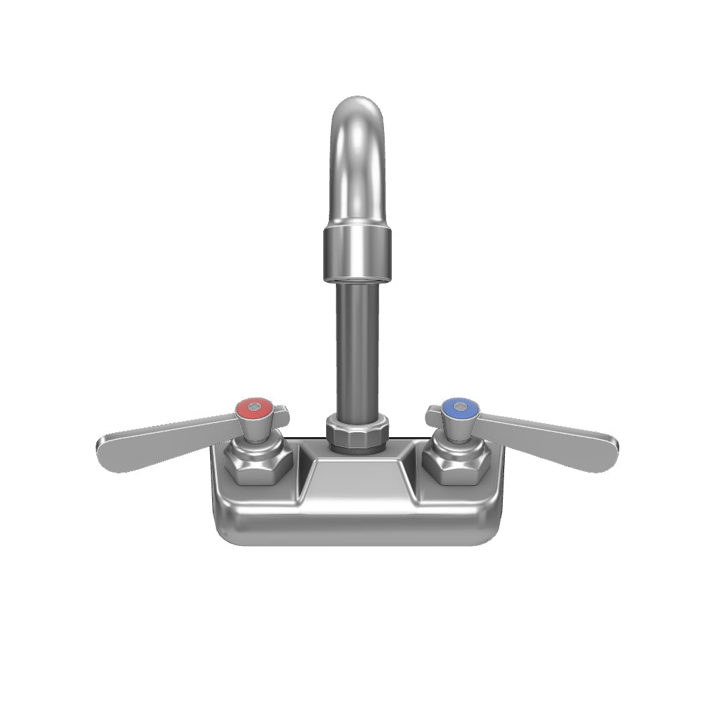 Wall Mount Commercial Faucet with 3 1/2" x 8 1/2" Swivel Gooseneck Spout and 4" Centers, NSF