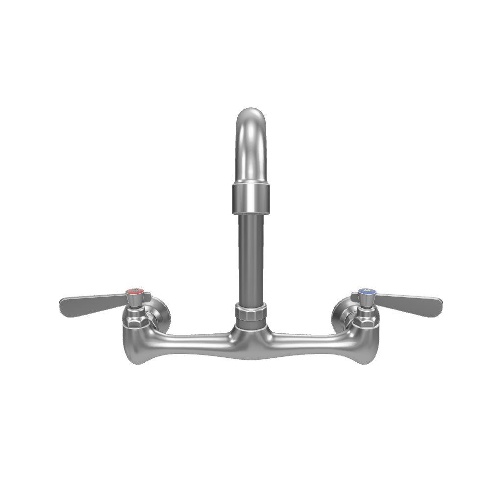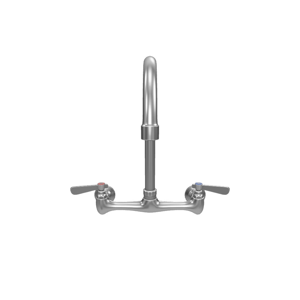 Wall Mount Commercial Faucet with 8" x 12 1/2" Swivel Gooseneck Spout and 8" Centers, NSF