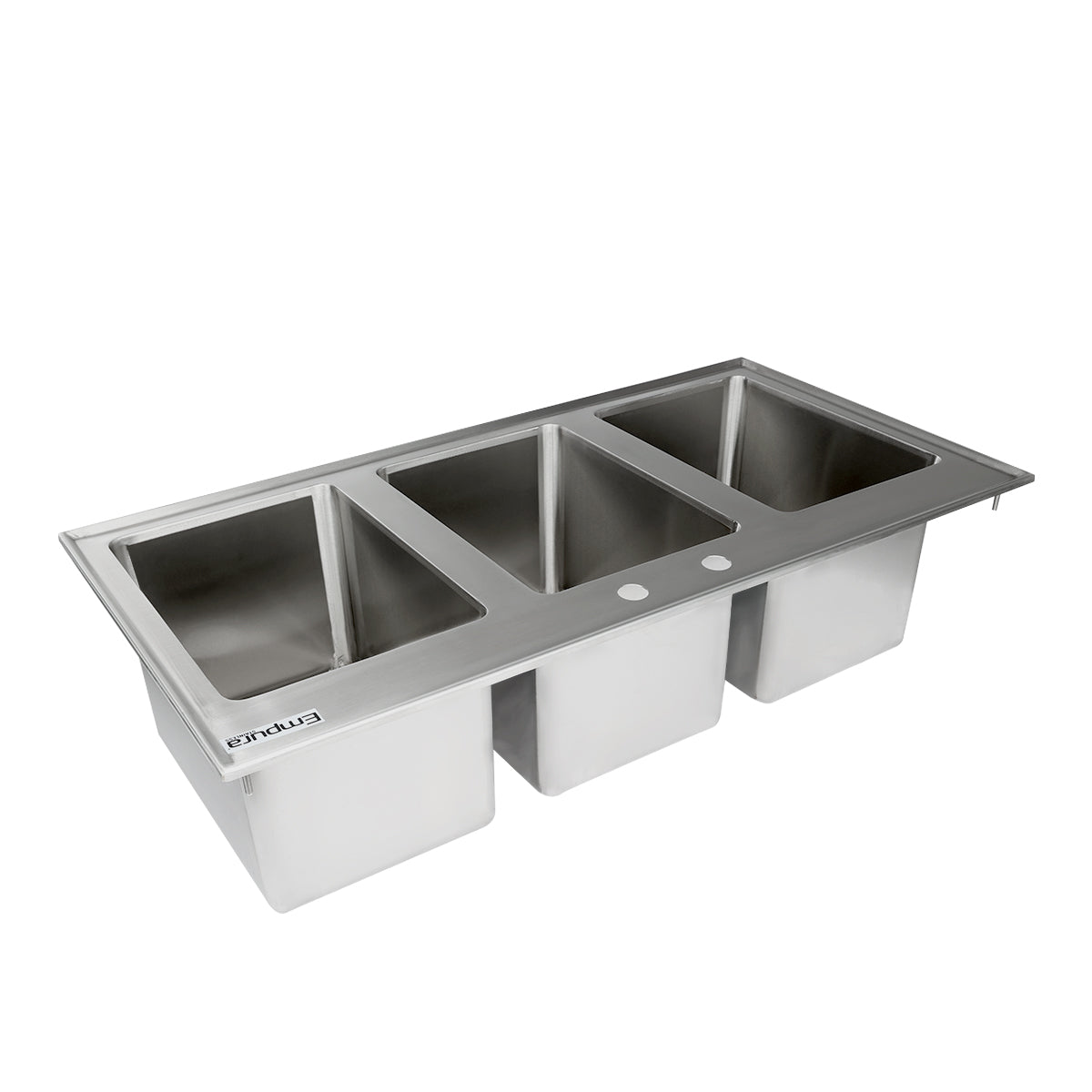 10" x 14" x 10" 16 Gauge Stainless Steel Commercial Three Compartment Drop-In Sink, NSF